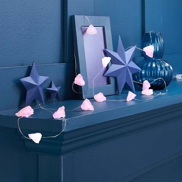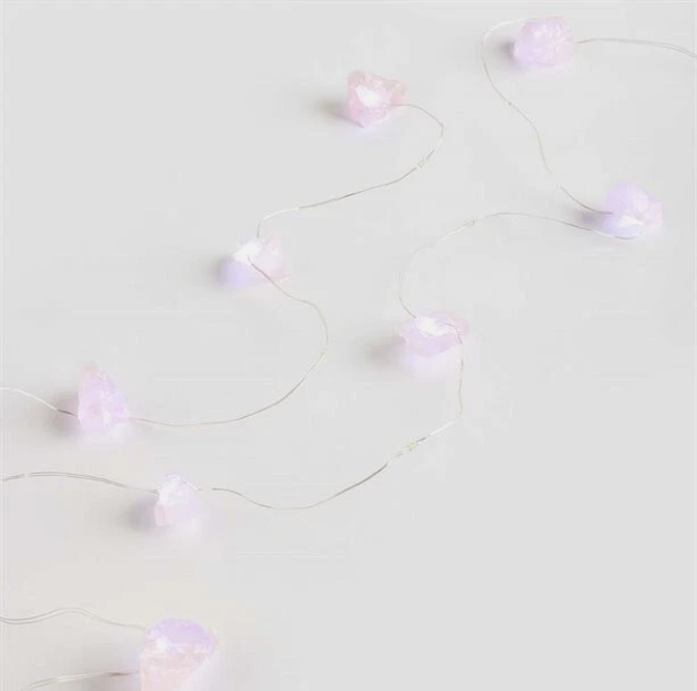 Featuring real Rose Quartz crystal decorations woven into a flexible rope and wire design, these lights emit a soft, cosy glow that transforms everyday rooms into something special.