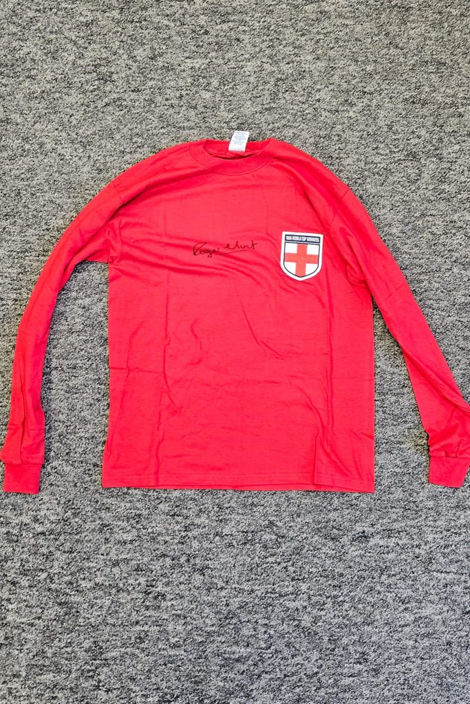 - 100 DTC – Red England Shirt – 5 (signed Roger Hunt)